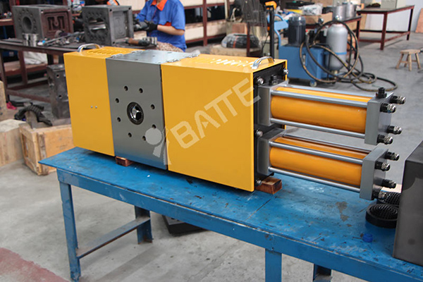 板式連續(xù)換網(wǎng)器與板式快速換網(wǎng)器,無(wú)論從外形還是結(jié)構(gòu)來(lái)看都極為相似,也是單板雙工位,不同的是板式連續(xù)換網(wǎng)器增加了引料排氣功能,換網(wǎng)時(shí)料壓波動(dòng)小、不會(huì)出現(xiàn)斷流。因?yàn)檫@些特點(diǎn),板式連續(xù)換網(wǎng)器在發(fā)泡制品、流延膜和造粒生產(chǎn)線上應(yīng)用更為常見(jiàn)。